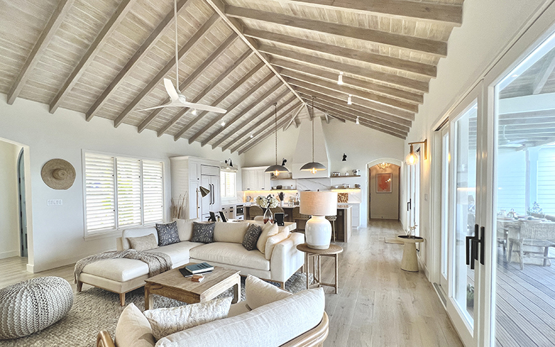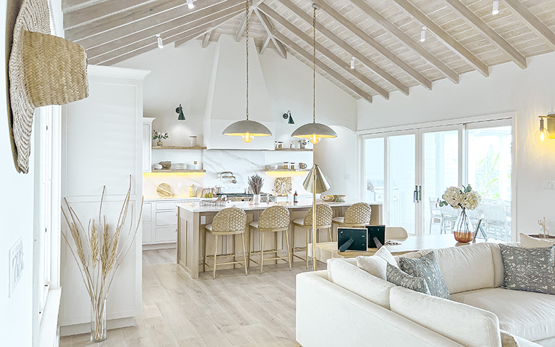 Beach House #3 is one of our multiple designs to choose from. The Neptune Beach House design boasts 3,000 SF of indoor/outdoor living space. This one-story home features three ensuite bedrooms, a powder room for guests, and spacious areas designed for both relaxation and entertaining. Every room has an open layout that emphasizes the organic beachy elements with a chic side to the design.