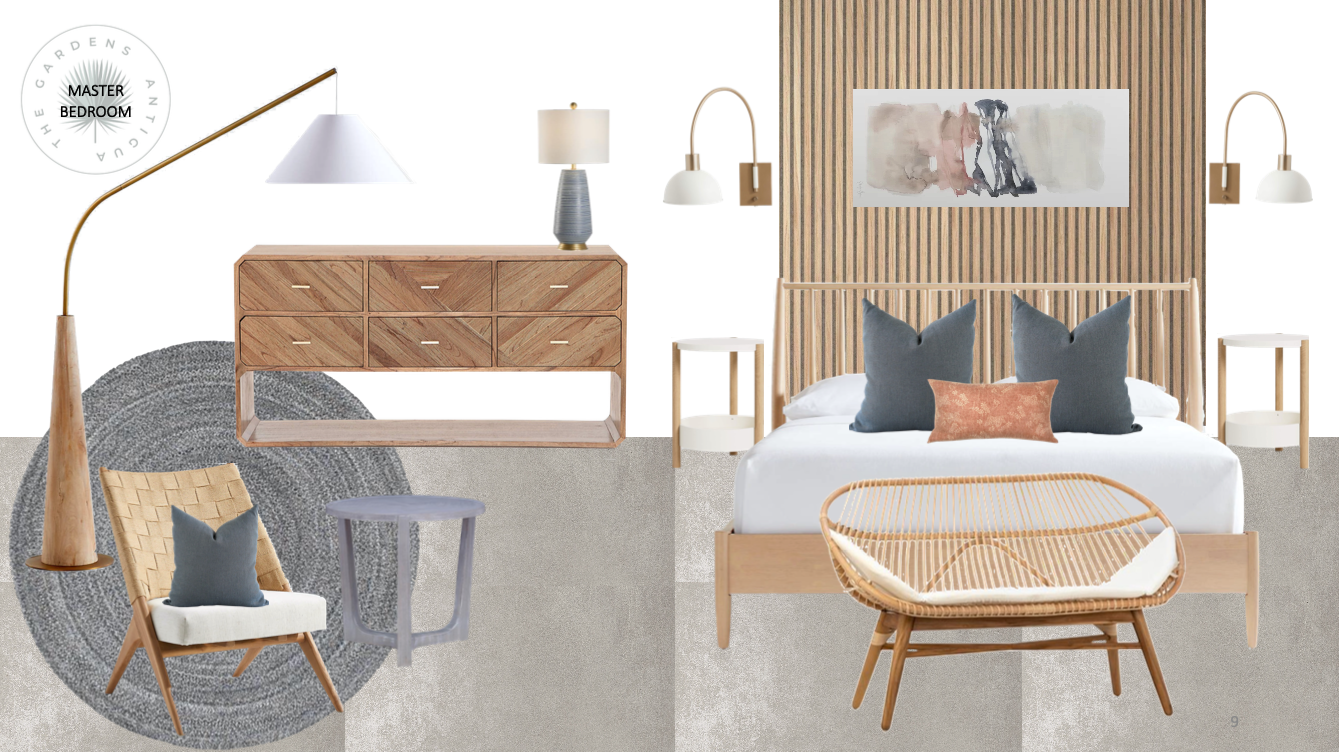 Take a look at this stylish mood board. It is just one of the styles that you can choose from for a 2-4-bedroom villa development, The Gardens. We are currently working on this new property as the main developer and designer. This Elmsbridge project presents a rare opportunity to own a brand-new property in the heart of Jolly Harbour. As a homeowner at The Gardens, you will be a part of a brand-new community. This location is perfect for a good lifestyle. It is in an upcoming and fantastic area and our team will provide you with a home with the best features.