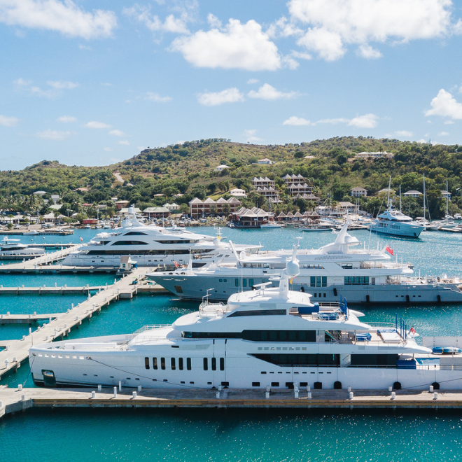 English Harbour and nearby Falmouth Harbour form the heart of Antigua’s yachting scene. Visitors can explore waterfront restaurants, boutique shops, sailing charters, and some of the world’s most impressive superyachts during the winter season.
