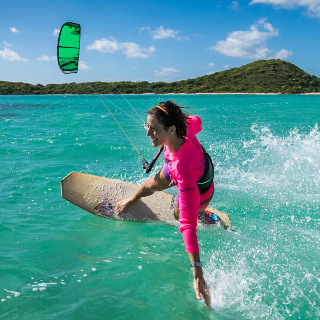 Nonsuch Bay is one of Antigua’s premier kitesurfing locations, known for its steady trade winds and sheltered open water. The conditions suit both beginners and experienced riders, making it a favourite spot for lessons, downwind runs and effortless days on the water.